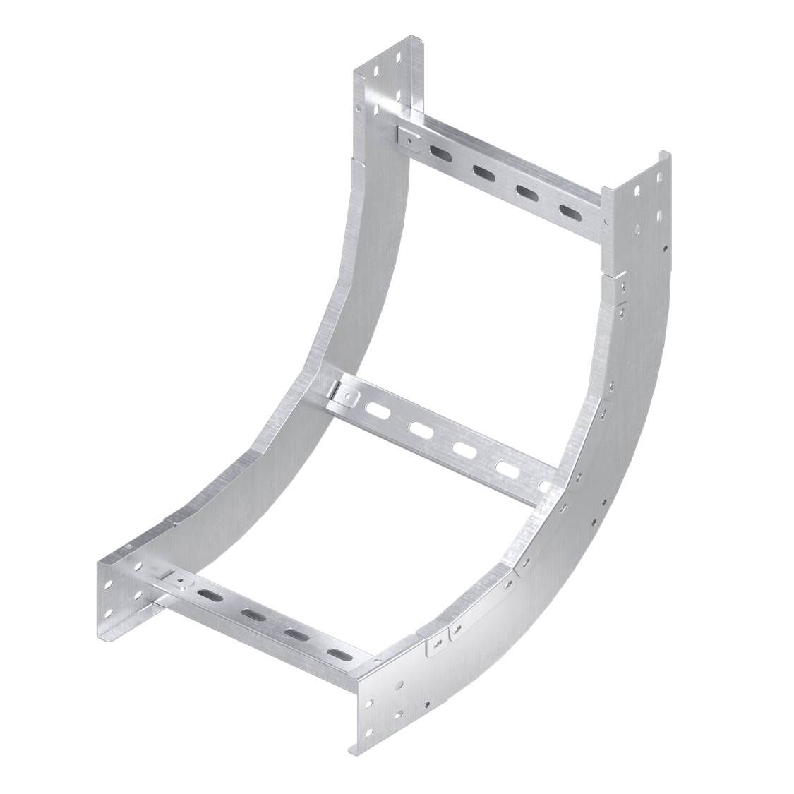Вертикальный угол 90 градусов обеспечивает поворот трассы в вертикальной плоскости под прямым углом. Плавность поворота облегчает прокладку силового кабеля. Направление -внутренний. Ширина -800 мм, высота -200 мм. Исполнение - "Горячий цинк"