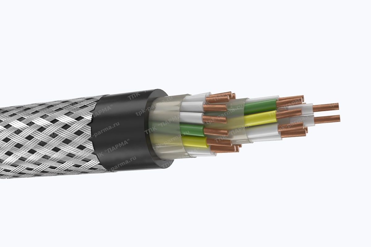 3. Экран поверх изоляции жилы в виде оплётки плотностью не менее 65% из медных